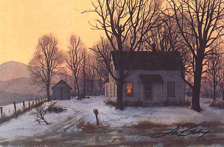 The picture I’ve attached to this devotional is a watercolor by Jim Gray that we purchased many years ago. The title is “A Light in the Window.” The setting is in the Smoky Mountains (of course). Every time I see it I am reminded of the faithfulness of God to continue to draw us home. He really does “leave a light in the window.” We don’t need a light to lead us home. He knows the way and comes to get us in order to take us there. However, it is a picture for me in the darker days of the journey. Somehow, I am always able to see the light when I merely look up instead of down. I am then encouraged by the truth that I am not going to a place of emptiness, but warmth and safety.